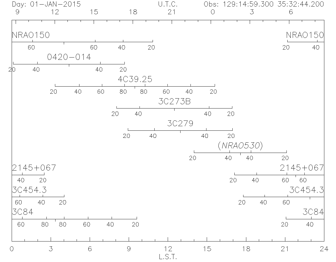 You can download the KaVA VEX example file from here and modify them for your observation. More sample vex files for a specific observation case are also available in the following table. The schedule submission should be done by a standalone vex file including calibration procedures (e.g. sky dipping, hot/cold calibration, focusing, pointing etc.). The correlation parameters must be clearly specified as an example VEX file.