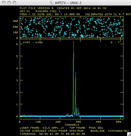The doppler velocity shifts due to the earth's rotation and its motion within the solar system and towards the local standard of rest can be corrected using the AIPS task "CVEL". When the ARRNAM keyword in the AN table is "VLBA", then "CVEL" assumes that all data have been fringe-rotated to the centre of the Earth and determine the velocity correction accordingly. KaVA follows the VLBA and fringe rotates to the Earth center. Thus, the ARRNAM keyword in the AN table has to be "VLBA". Please run the task "TABED" and give "VLBA" to the ARRNAME keyword in the AN table.2.4 Gibbs ringing effects around a bright and narrow spectral line